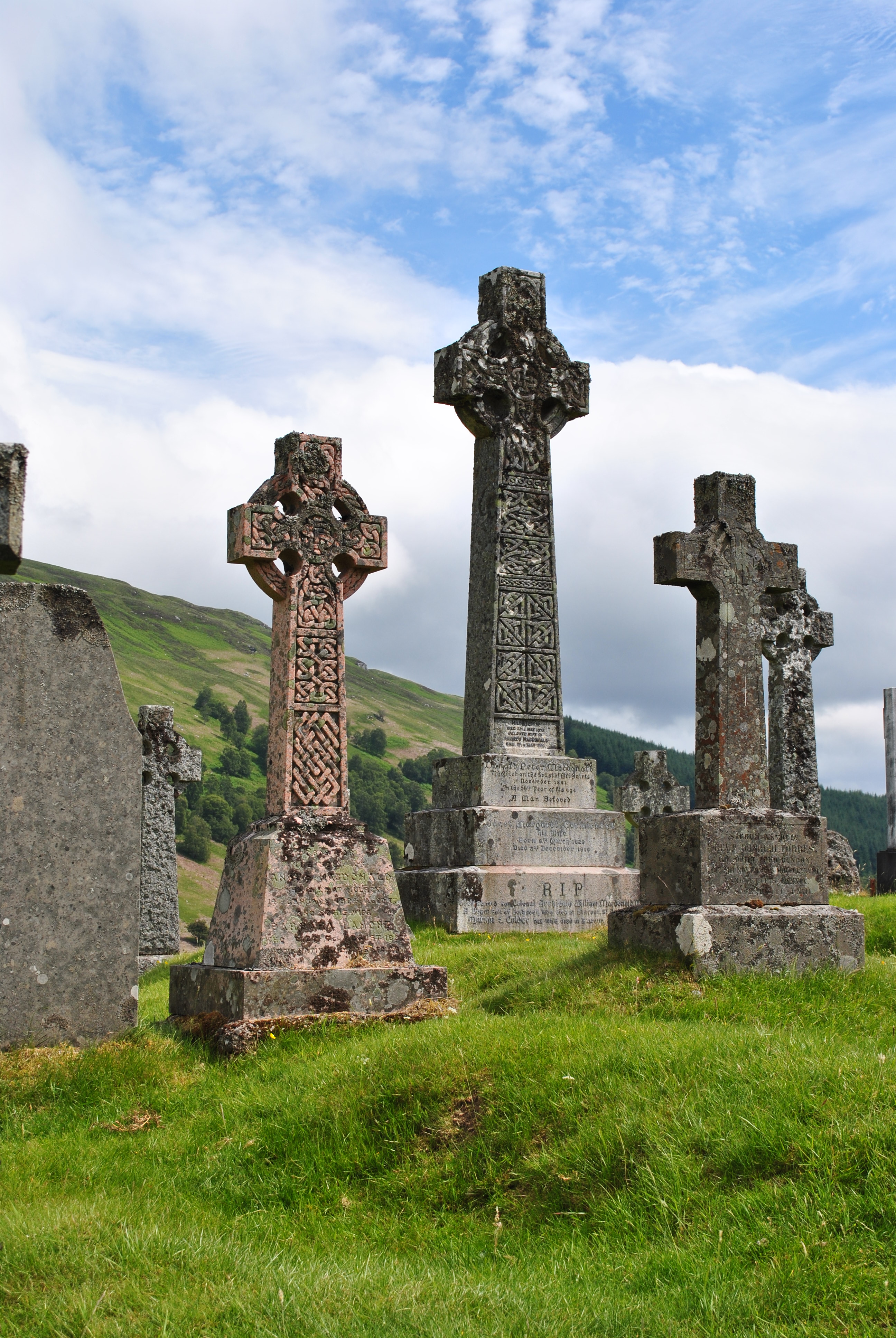 The Celtic Cross is very common on Scottish graveyards. Very often a Celtic High Cross marks a grave or event of importance. A very distinct cross, found in Ireland and Scotland but hardly anywhere else, with the exception of America, where they are often used as single monuments.