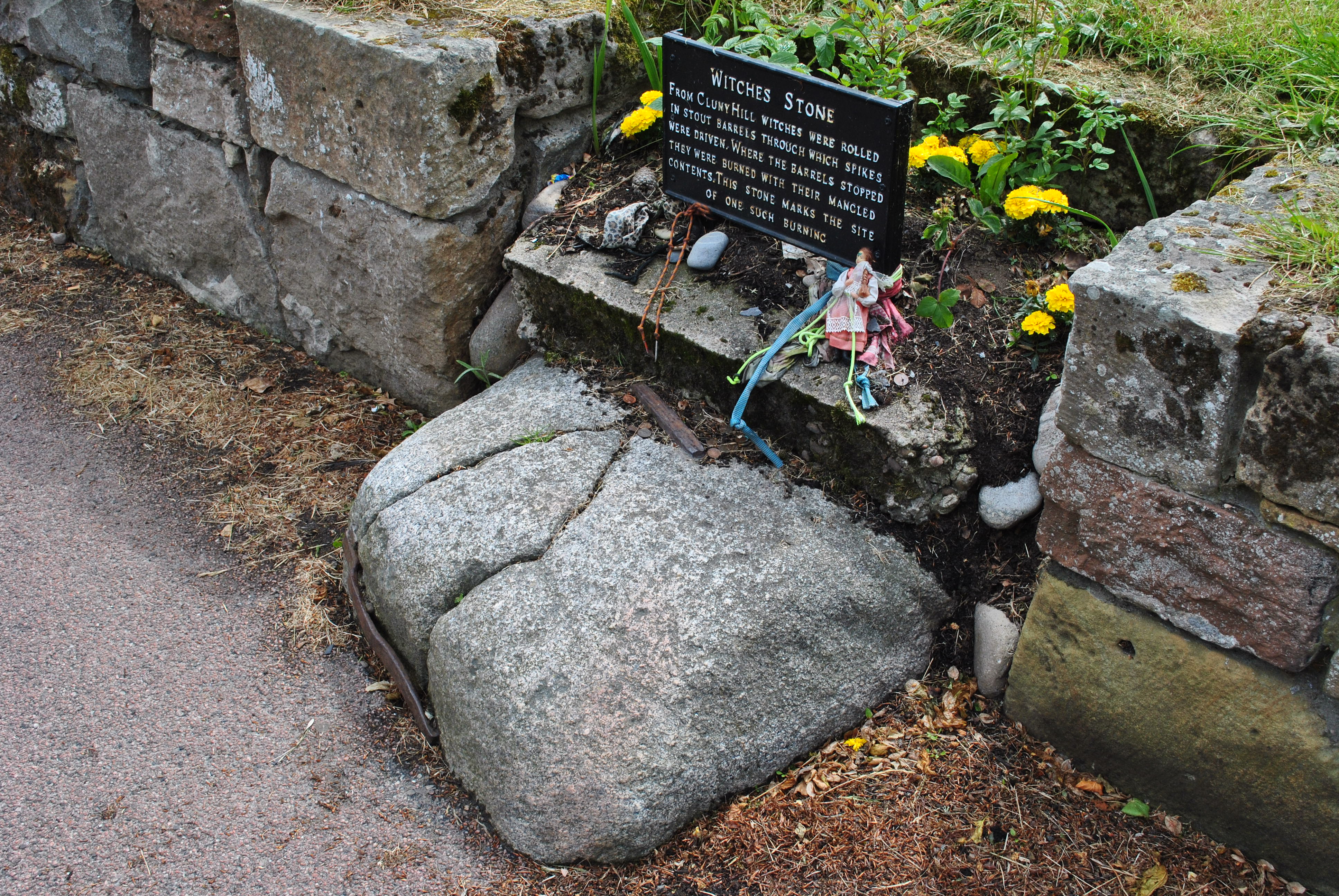 I grew up here! The stories of the witches were still very much alive when I were wee. Interesting you mention the iron bands, I had never heard the story of someone trying to break up the rock. Local legend when I was a child was that it was thought the boulder splitting was the devil trying to get at the witches soul, hence the iron bands added whenever it cracked.