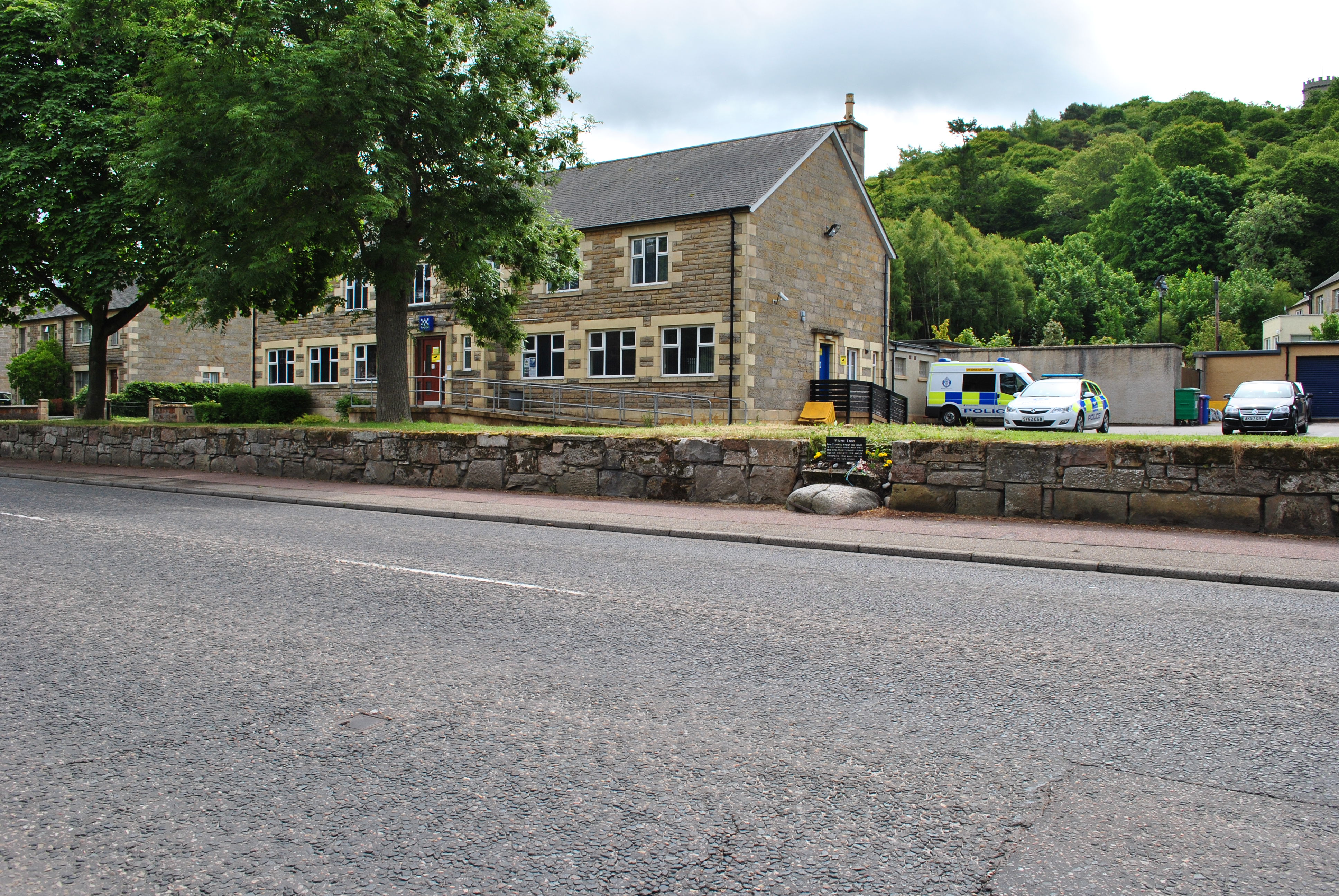From Cluny Hill at the back of the police station the witches were rolled down, stuck in a small but stout and closed barrel with spikes on the inside. An incredibly cruel torture and most of them must have been either dead or close to death by the time the barrel stopped moving, which was exactly in the place where the witch’s stone sits today. They burned the barrel right at the same spot, with the poor woman accused of witchcraft inside.