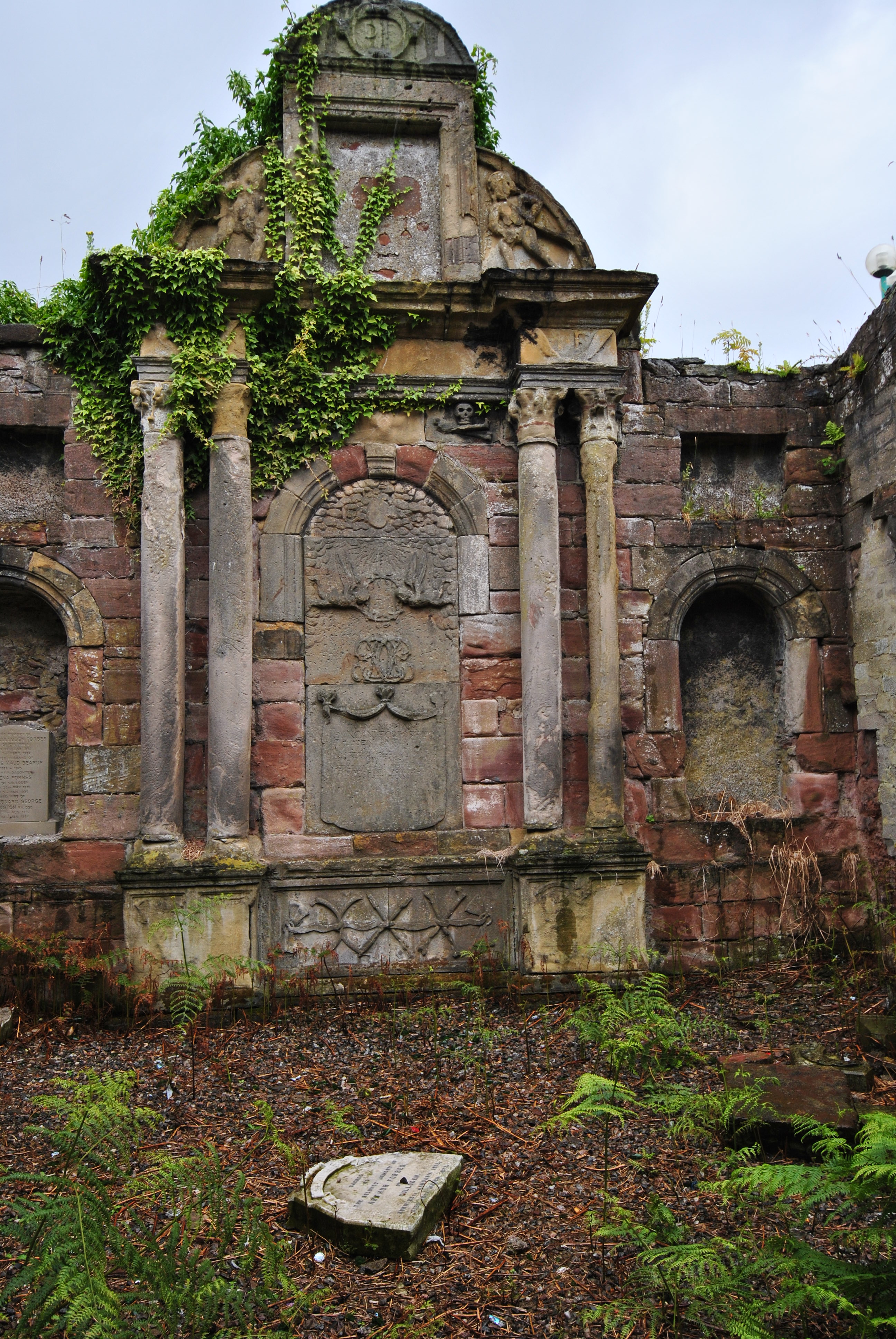 Inverness graveyard (32)St. Mary’s Chapel  yard in Inverness, an ancient burial ground right in the heart of the Highland’s capital, is but rarely visited, being somehow hidden behind high walls.
