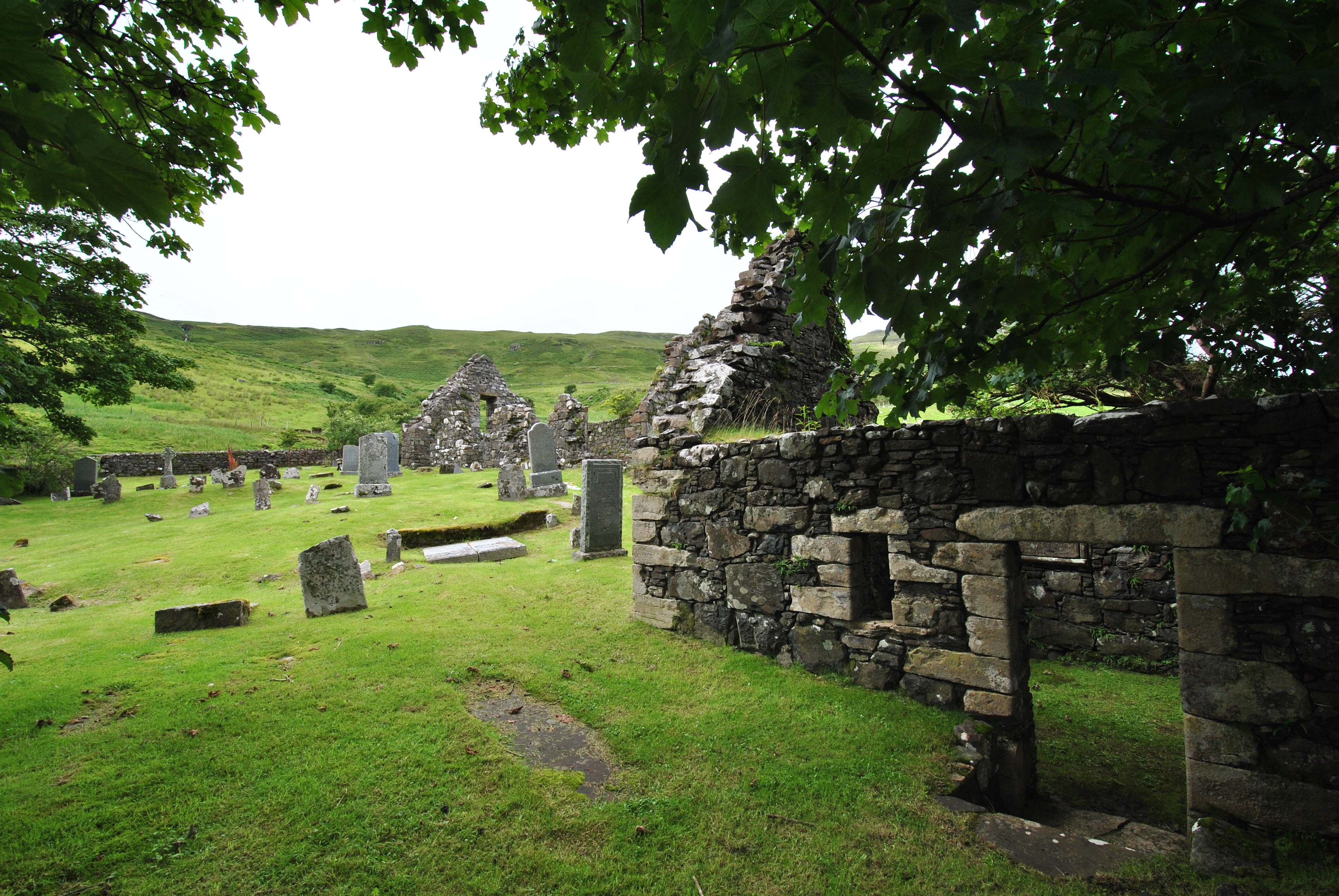 The walls of the two ruins on the graveyard in Glen Eynort at Borline have crumbled.