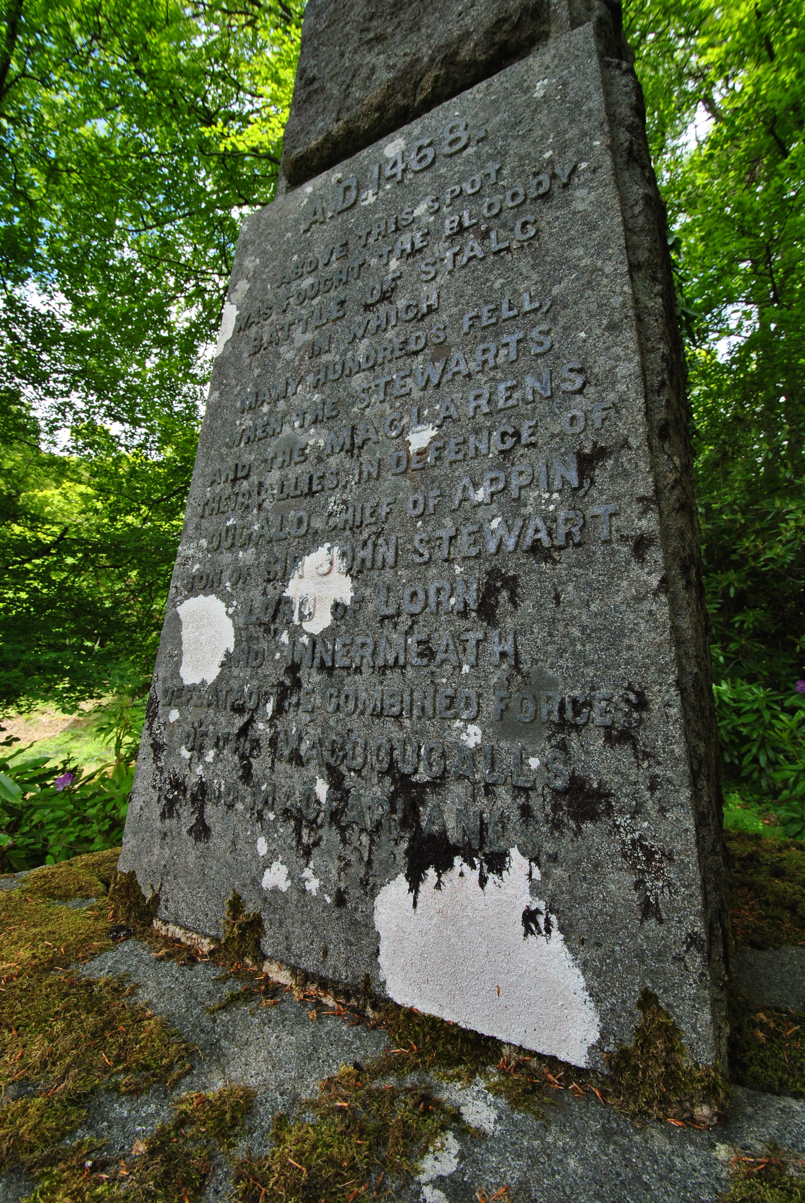 Portnacrois (22)A massive granite stone on a crag above the graveyard of Portnacrois marks the site where “many hundreds fell,  when the Stewarts and the MacLarens, their allies, in defence of Dugald Chief of Appin, son of Sir John Stewart, Lord of Lorn and Innermeath, defeated the combined forces of the MacDougalls and the MacFarlanes. “