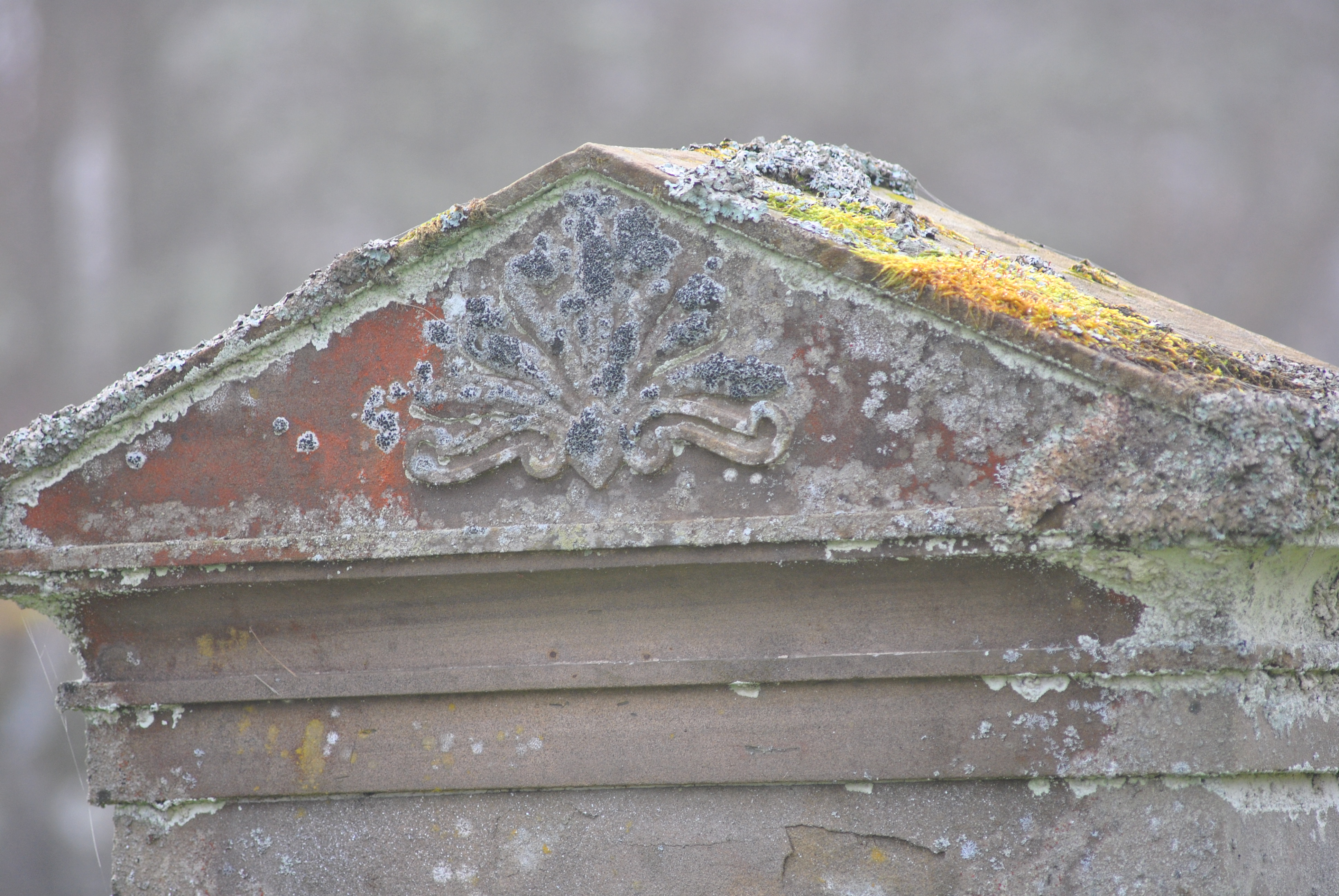 The growth of moss and lichen slowly erases many untold stories in stone and the grey mist throws a wet shroud over those long gone.