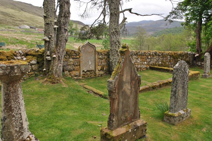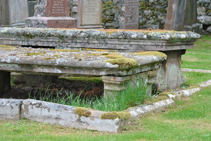 John Ross’ … son Sandy was born in the kirkyard ‘in a make-do shelter built of birch branches and turfs’ and lived to become the ferryman at Ardgay … believed that the actual delivery of the baby had been ‘on one of the slab stones at the north-west corner of the burial ground’.