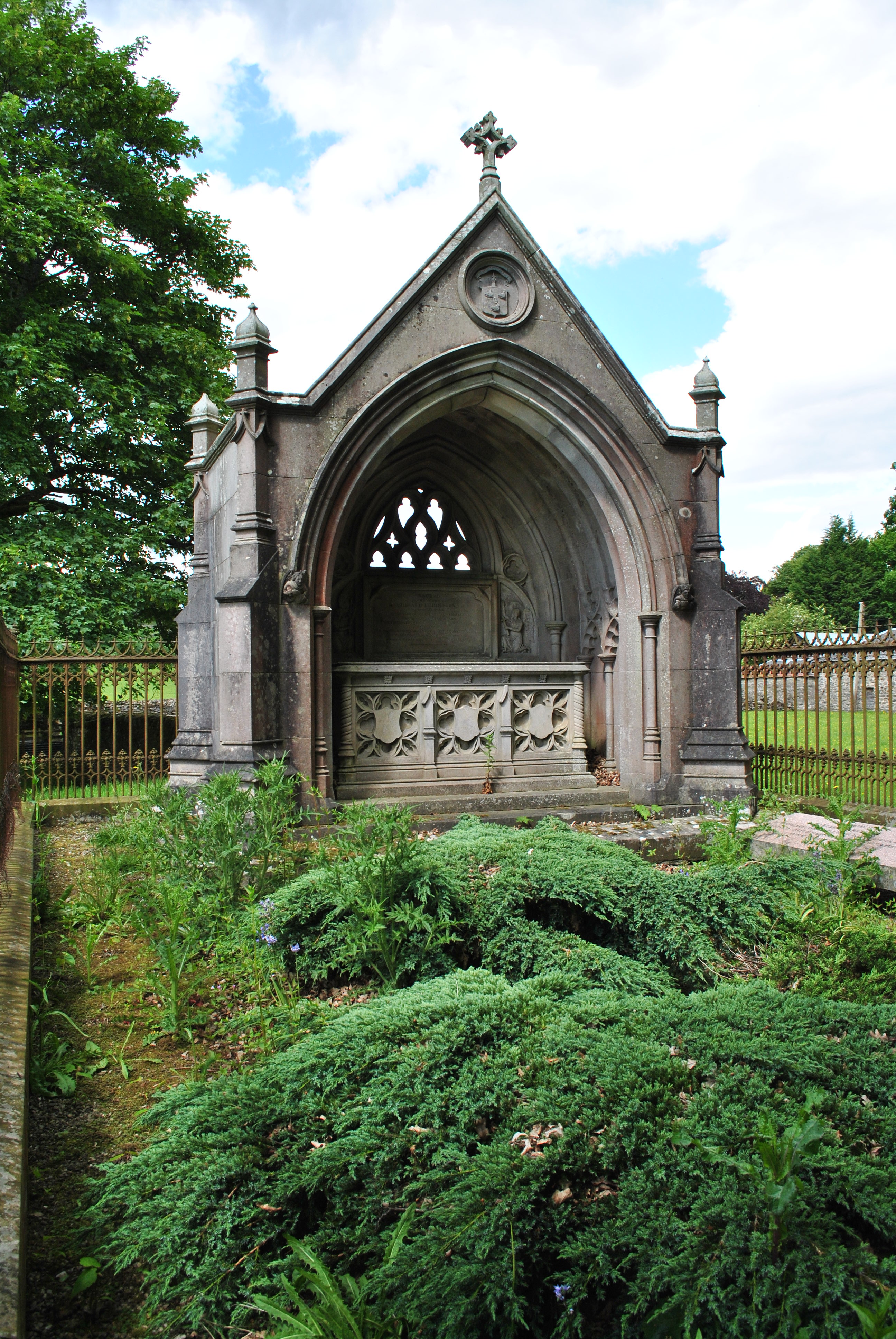 Most people will travel to Dunfallandy to see the Pictish stone. But a far more bloody tale tells the burial enclosure right next to the ancient marker of the Picts. The graveyard is not signposted for it is the private burial enclosure of the Fergussons of Dunfallandy.