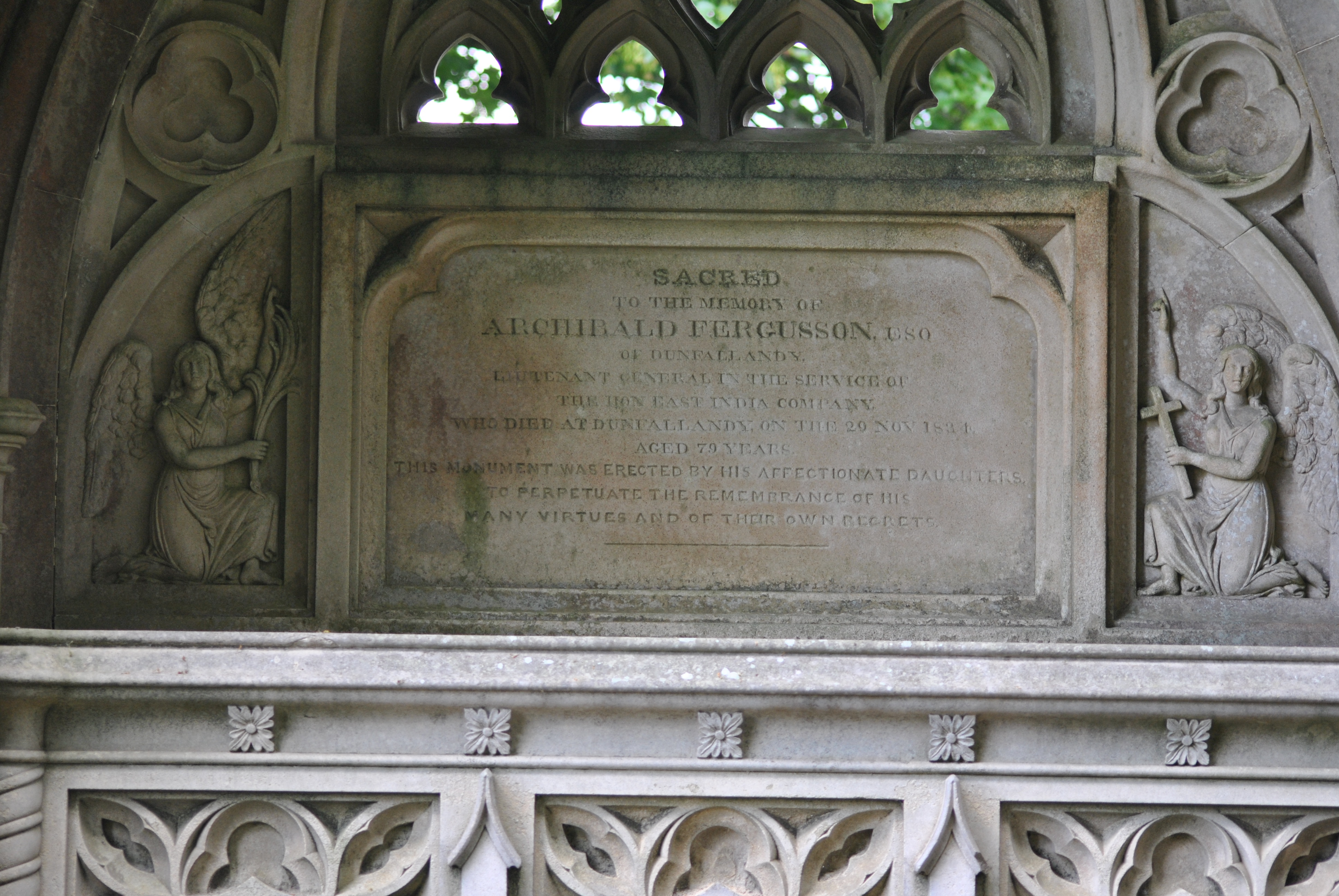 Seven of his eight children came to Dunfallandy, and the chief returned in 1815. On his death in 1834 Archibald Fergusson was interred within the family burial ground.