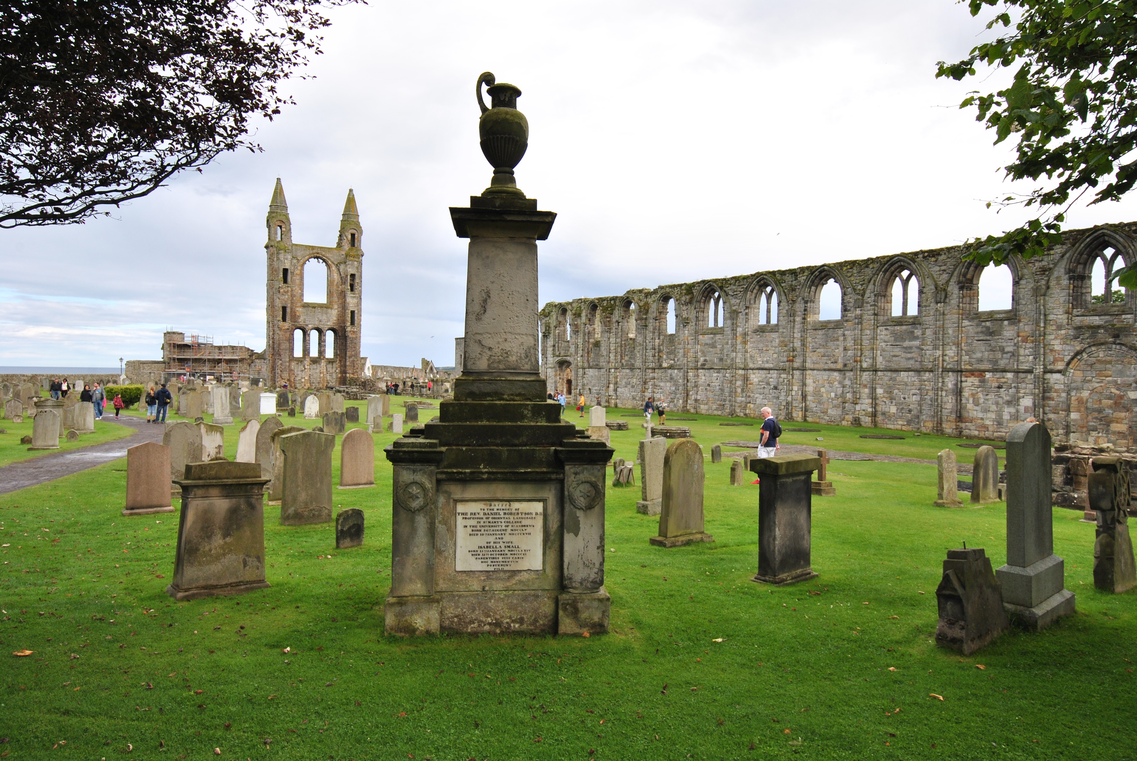 The ruins of St Andrews Cathedral are still impressive today; built in the 12th century, the cathedral was the heart of the Roman Catholic Church in Scotland and the largest church ever to be built in this country, but it went into disuse after the Reformation. A large number of bishops is buried in the cathedral. The religious heat has somehow stopped beating in St Andrews.