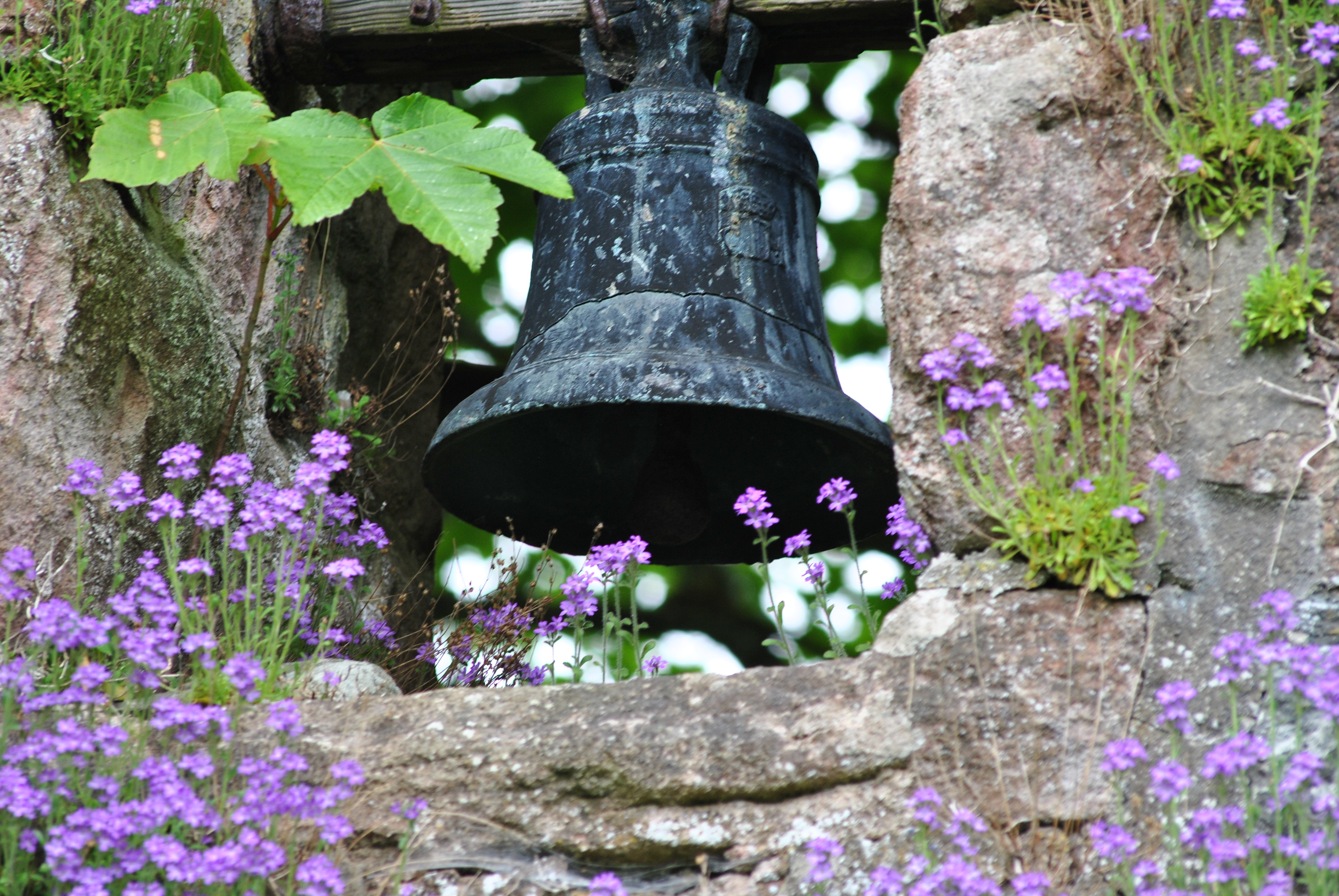 The wide impressive portal covered in bellflower is a sight of sheer beauty in summer. The bell bears the arms of the Graham family and dates back to the 15th century, therefore it is much older than the gable in which it was fitted.