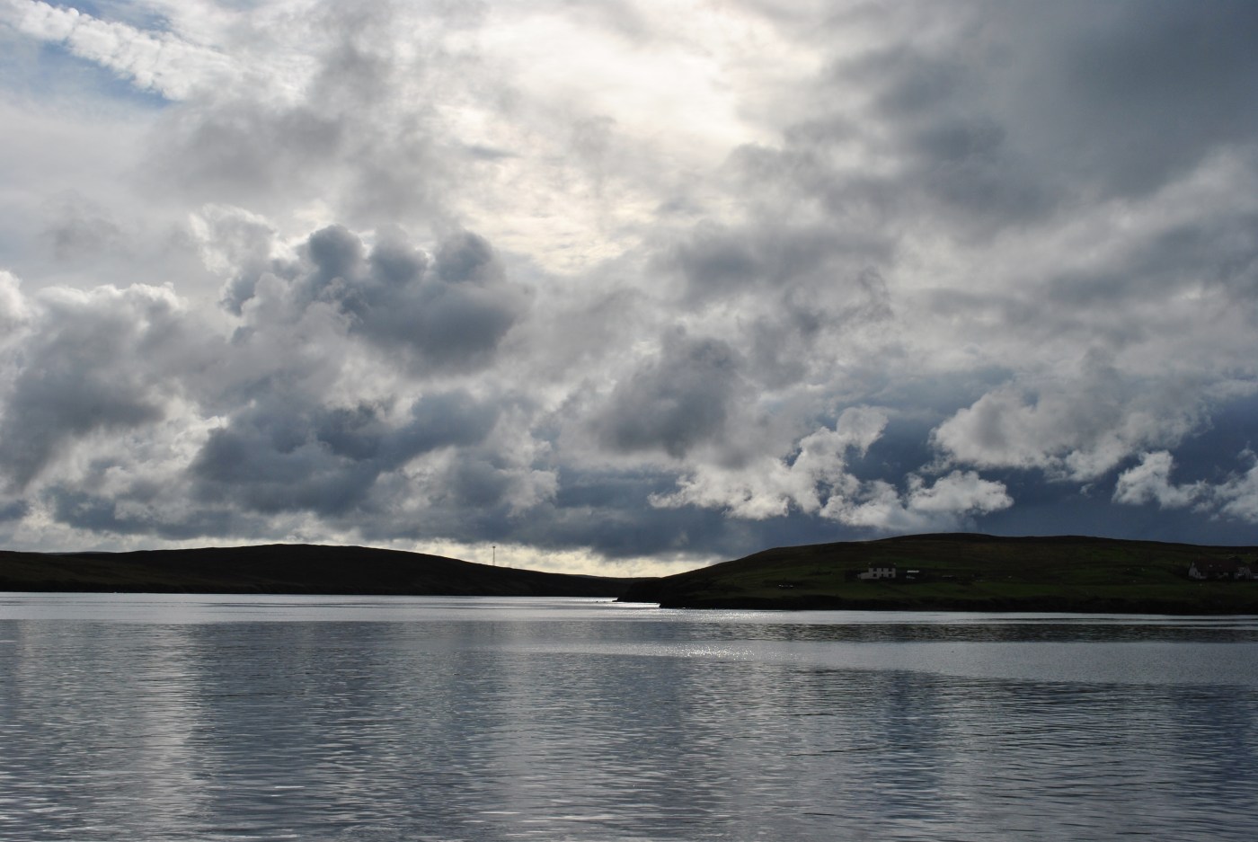 The name Ollaberry derives from Old Norse Olarfsberg, the hill of Olaf. It is a small settlement on the Northmavine peninsula of Shetland Mainland, the land north of the isthmus Mavis Grind. Northmavind offers spectacular views.