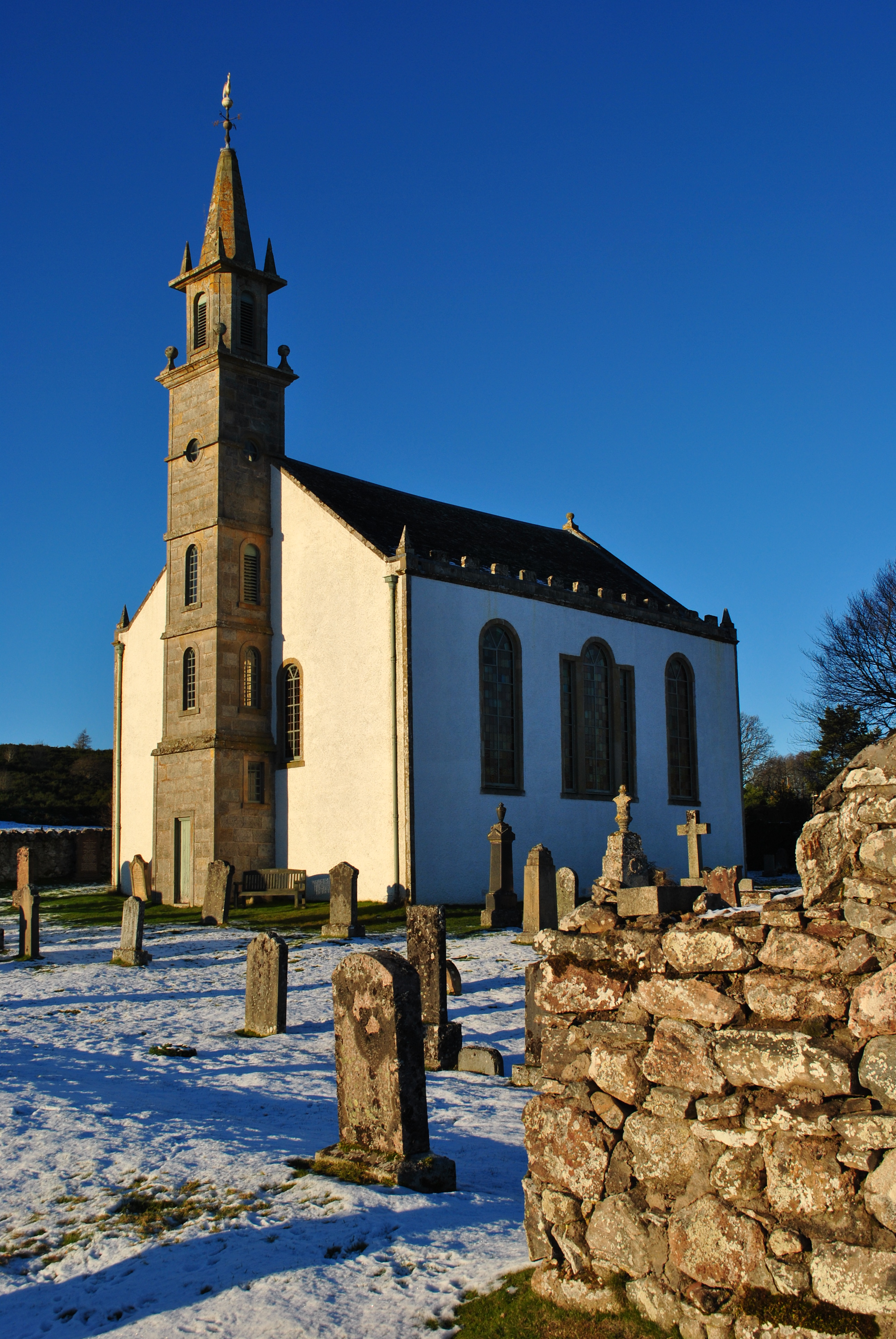 Daviot church on an afternoon in January can be breathtaking, in any other weather it might not even be impressive although the regular white washed building with the pleasing proportions and the unusual belltower hold beauty in themselves.