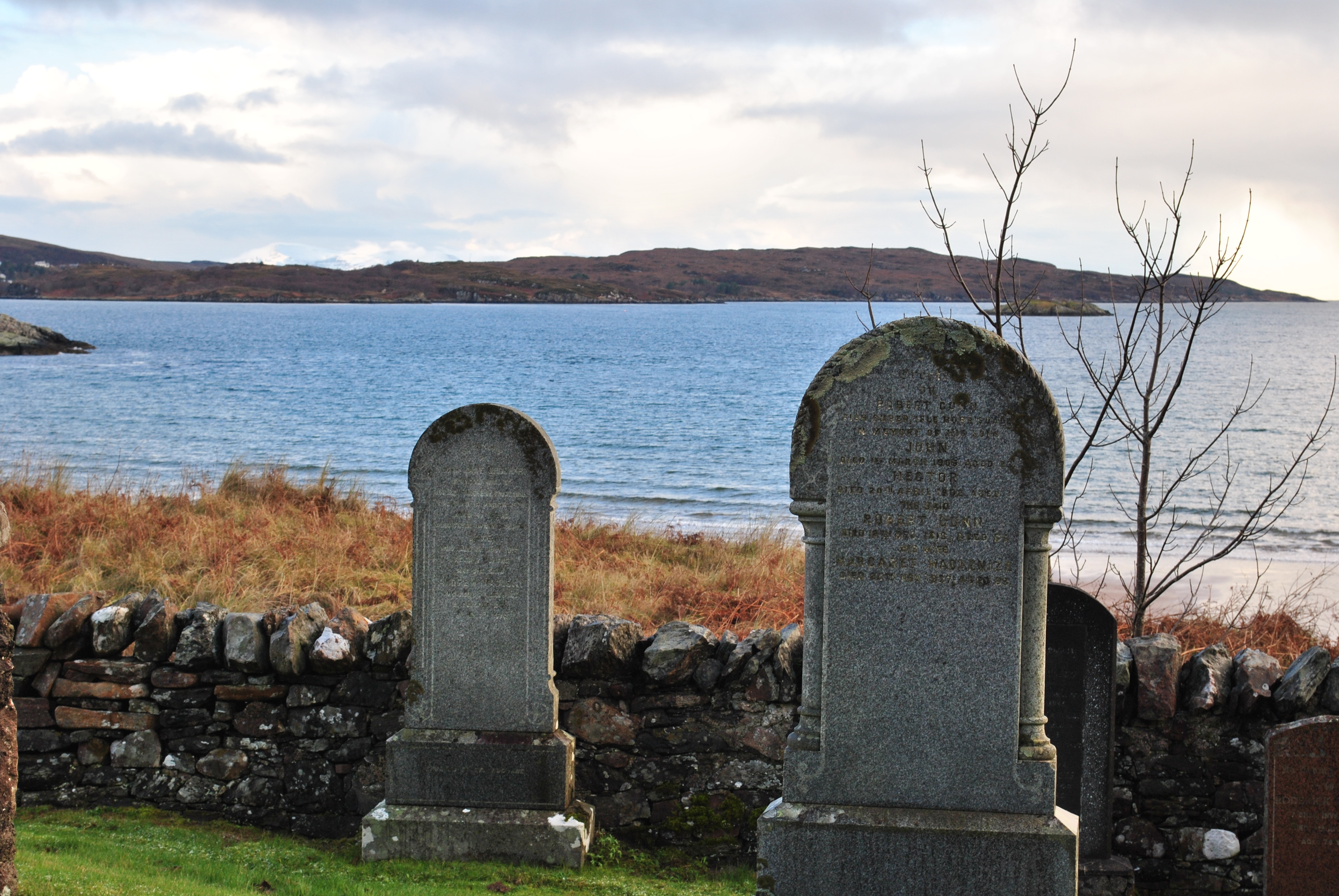 The very first church in Gairloch goes as far back as Maelrubha, the late 7th or early 8th century. It stood roughly in the middle of what is the churchyard today. No traces are left. The Mackenzies buried their chiefs in Gairloch since the 16th century, the baronets were interred in Beauly priory. One of the first to be buried in the small chapel in the graveyard was probably the great warrior chief Hector Roy, who died in 1528. There is still some doubt surrounding his interment in Gairloch but not as far as his grandson John Roy is concerned who was definitely buried here a hundred years later.