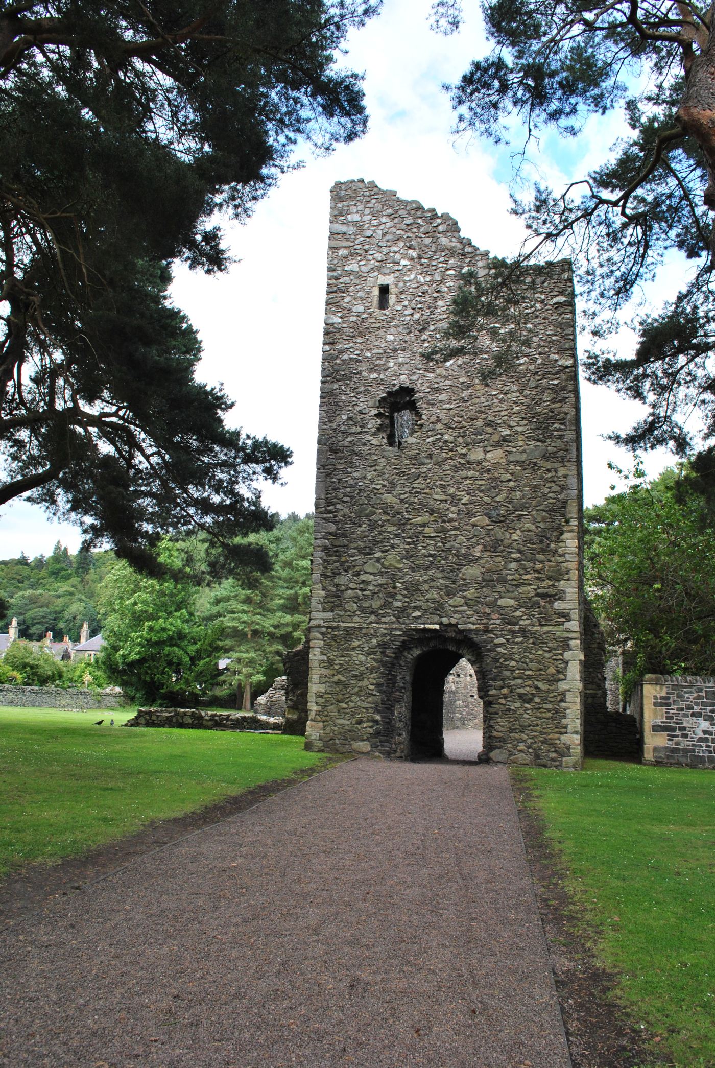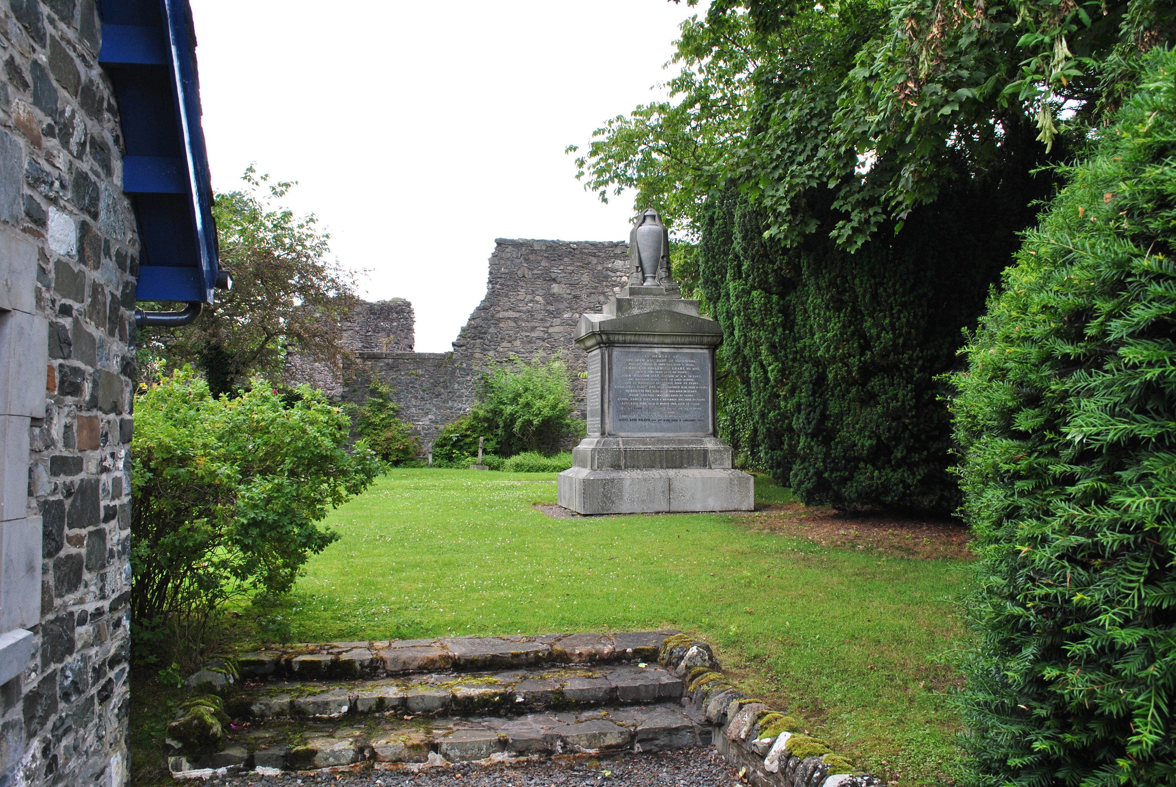 The church was subsequently used as a parish church and burnt down in 1548 by the English. The aisles were used as a grave lair, of which there is almost no recognizable. There is a small graveyard outside the walls of Cross Kirk, probably once used by the priory, unfortunately it was closed at the time of visit.