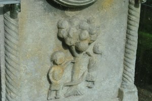 The graveyards of the Borders are well documented and in Lyne special effort for conservation have been made. The old gravestone with the beautiful Adam and Eve carving was cleaned and treated against moss and lichen and put under perspex for protection. Paradise protected but lost.