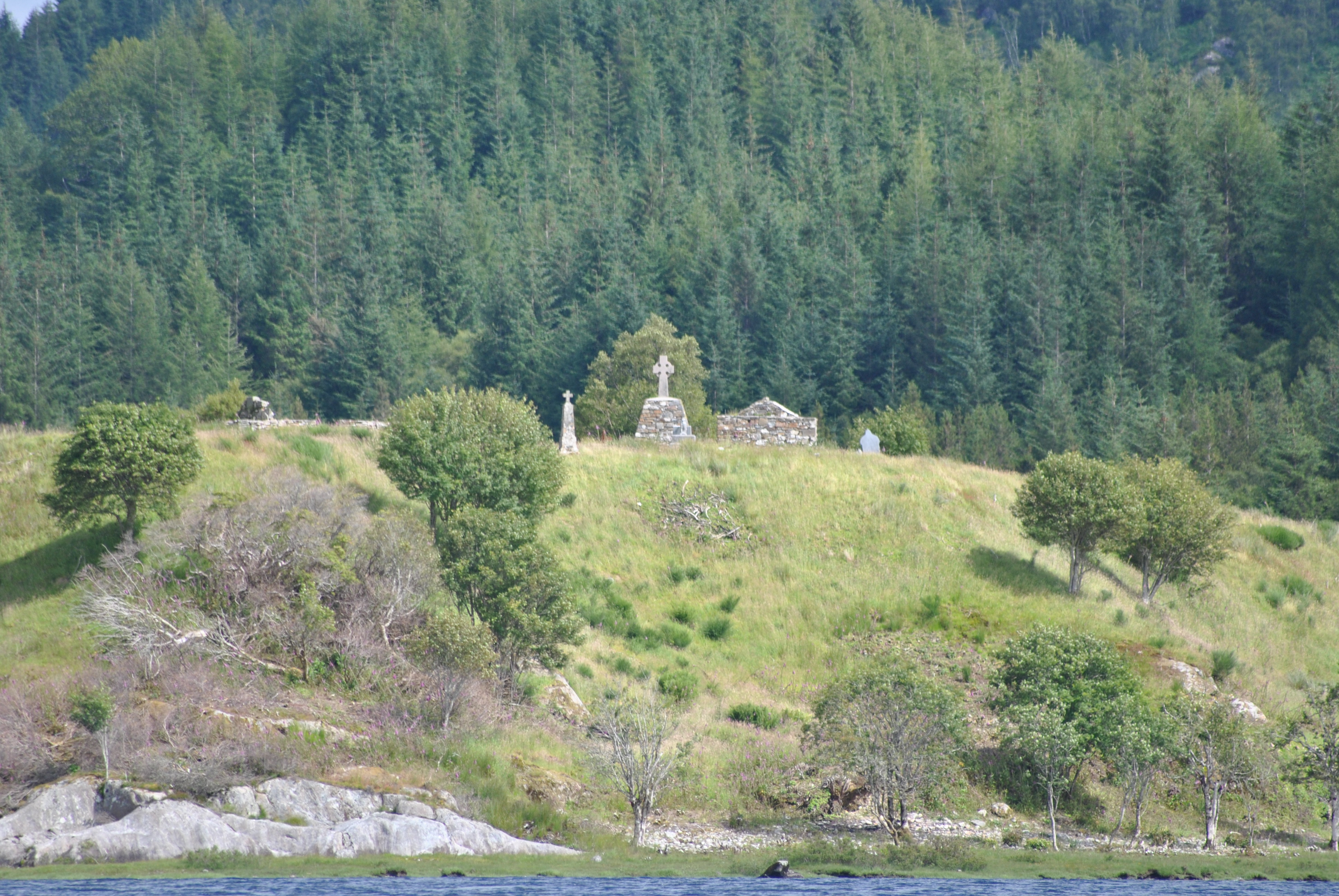 Many were killed. Young Ranald, stranger to his own clan and raised by his mother’s family, died in the attempt to become chief. But how did he die? Some say, we was killed not during but after the battle by a surgeon who was supposed to tend his woods. Others, that he was killed by a strong warrior of his very own clan, Mac Dhonuill Ruaidh Bhig, who cleft his head with a Lochaber ax or a sword. Ranald’s body was taken to Eilean Fhionnan, a small burial island in Loch Shiel. But he did not get much rest on the peaceful island.