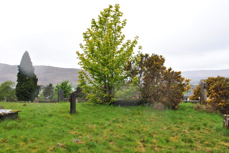 It is highly unlikely, that Cromwell’s officer lies buried here. There are a few very old marker stones and headstones, their writing lost throughout the centuries. What remains is the impressive archway to the old garrison. The graveyard of the Cameron chiefs lies a few miles North of Fort William.