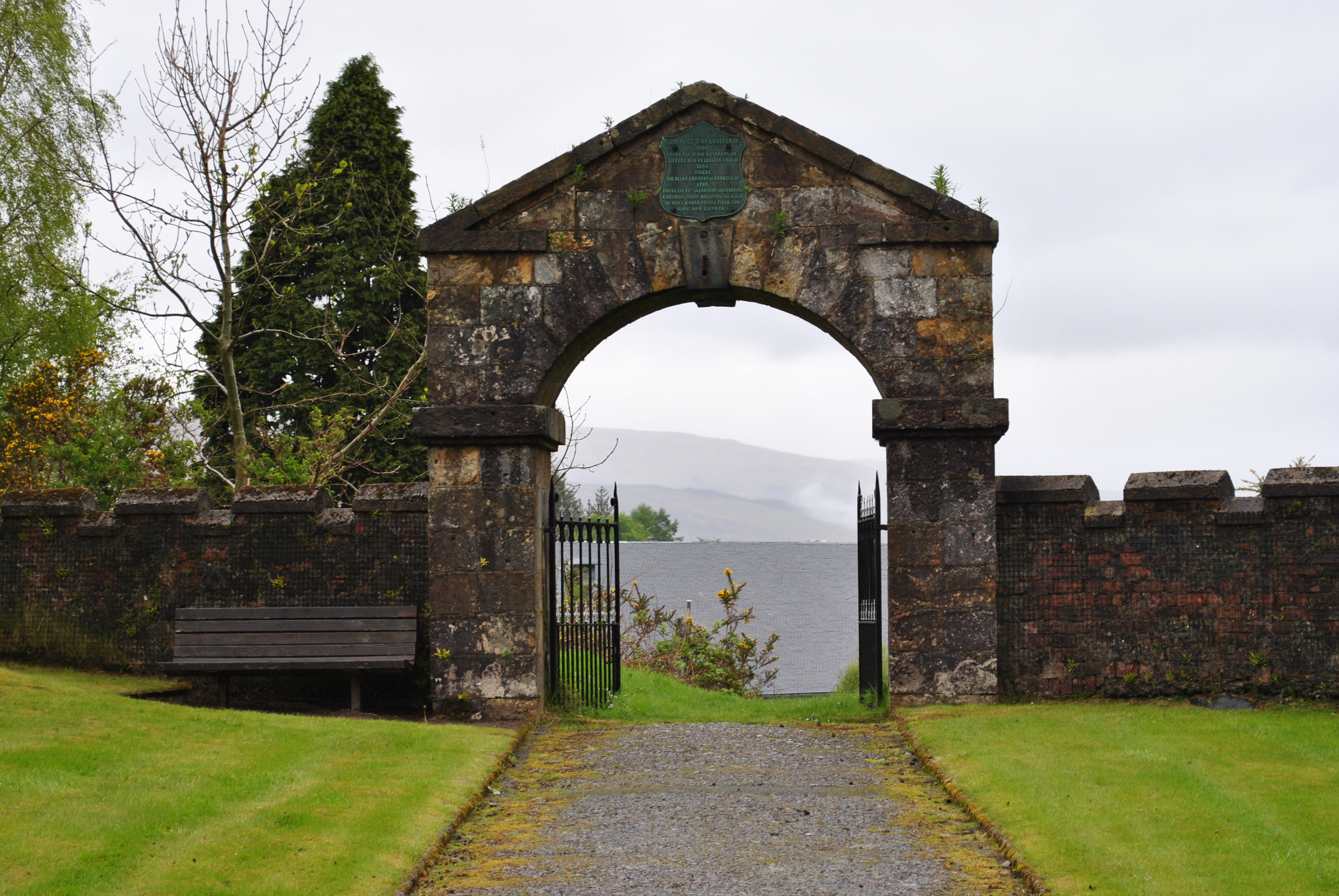 It is highly unlikely, that Cromwell’s officer lies buried here. There are a few very old marker stones and headstones, their writing lost throughout the centuries. What remains is the impressive archway to the old garrison. The graveyard of the Cameron chiefs lies a few miles North of Fort William.