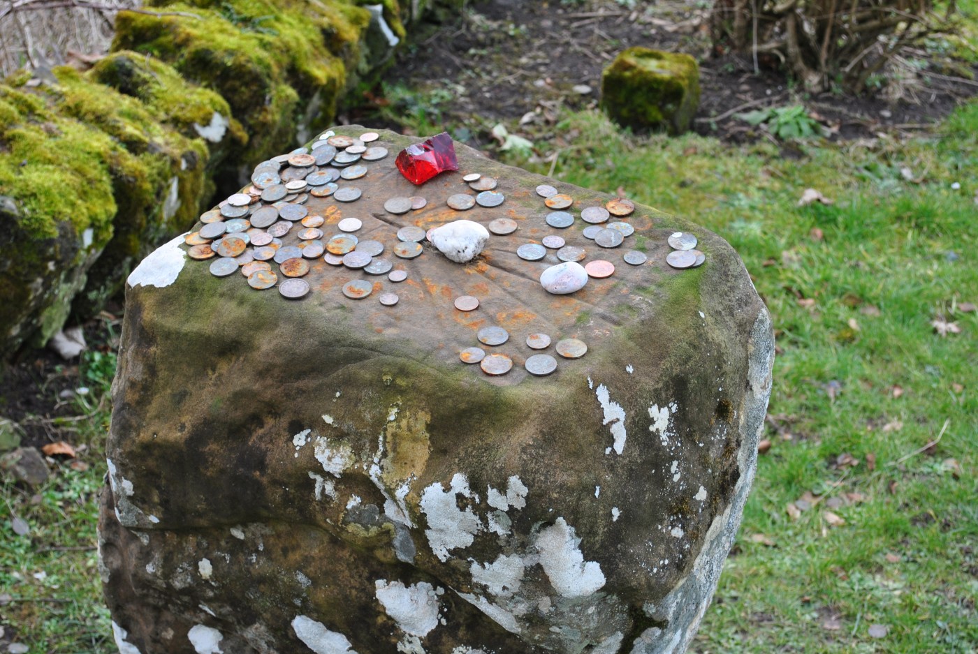 Is this stone a testimony of those days? It sits quietly in the graveyard of Dunino church, new age worshippers have made it into a wishing stone and scattered money, some reckless person of the past had used it as a sundial.