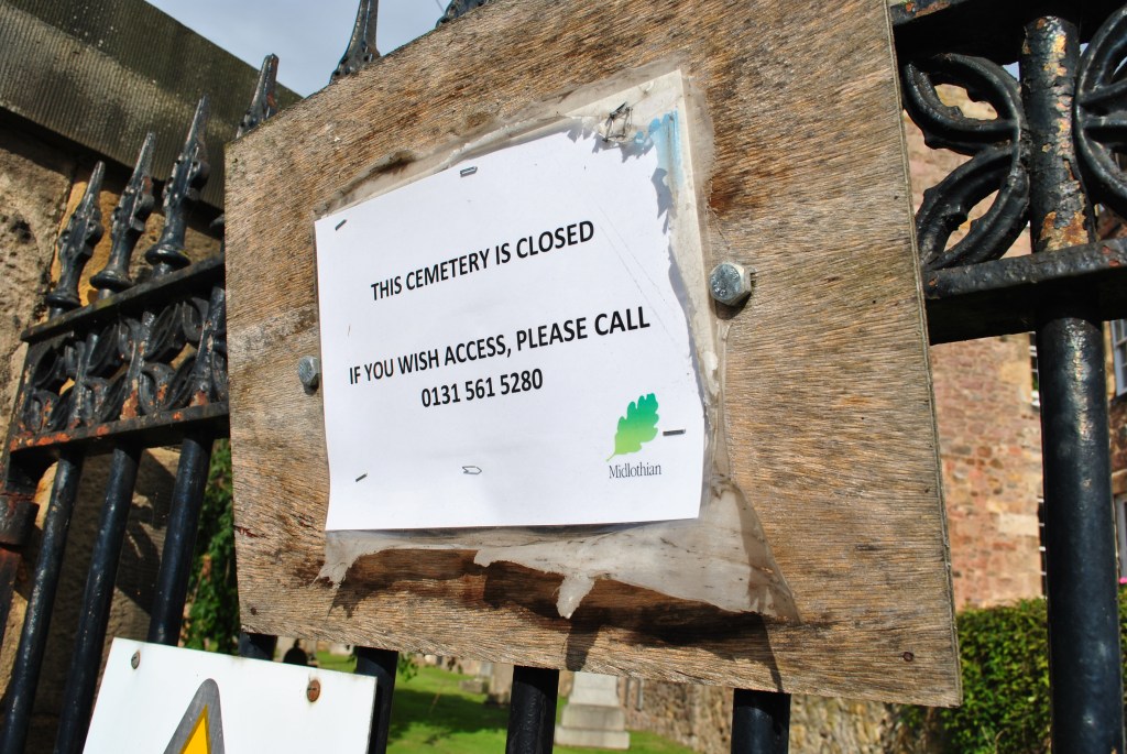 It seems the power of the key has now transferred to the Council. Dalkeith old graveyard is closed to the public.