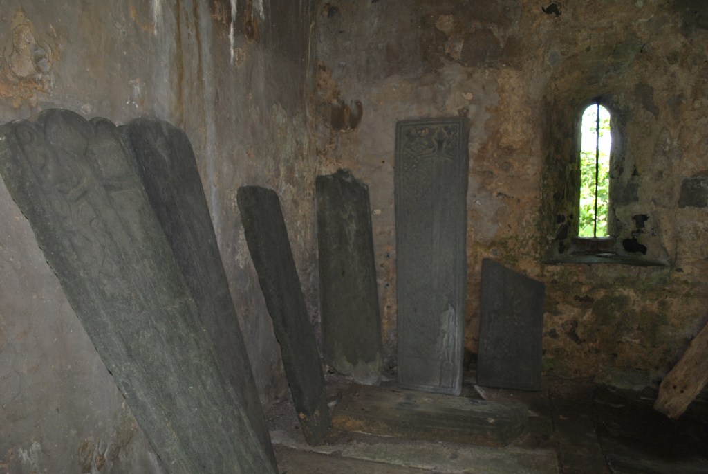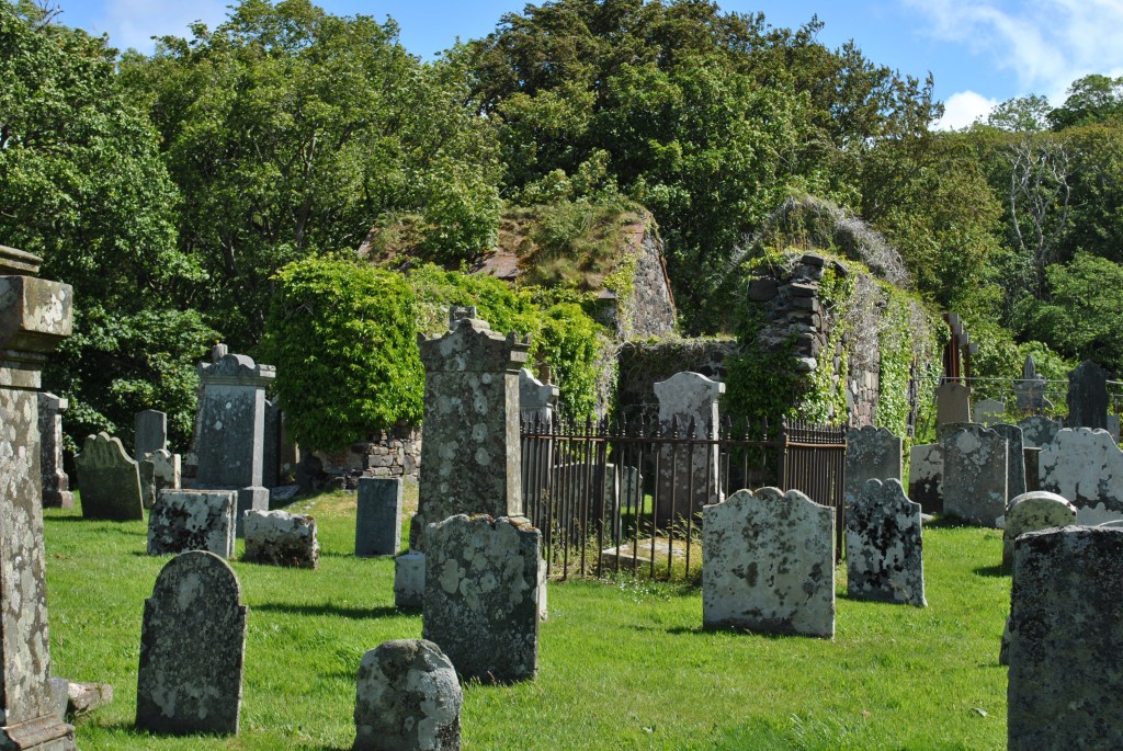 This is a graveyard well worth visiting, because of the view of the Sound of Gigha, because of the abundance of beautiful old headstones and because this is an ancient place of worship, established 800 years ago in 1222. A few years later Alexander II gave it to the bishopric of Argyll.