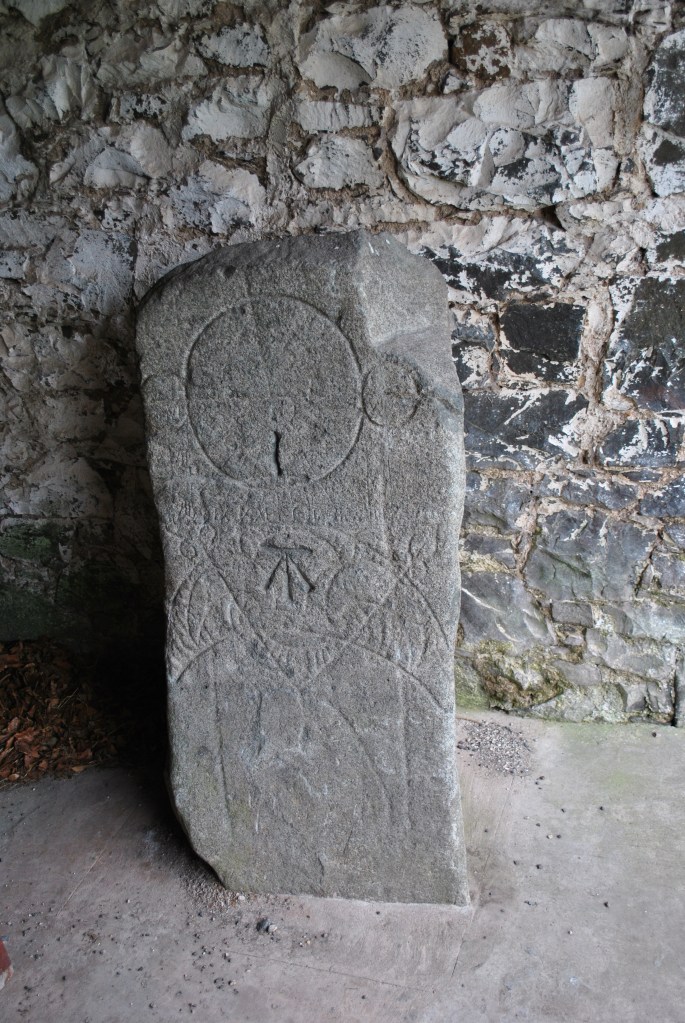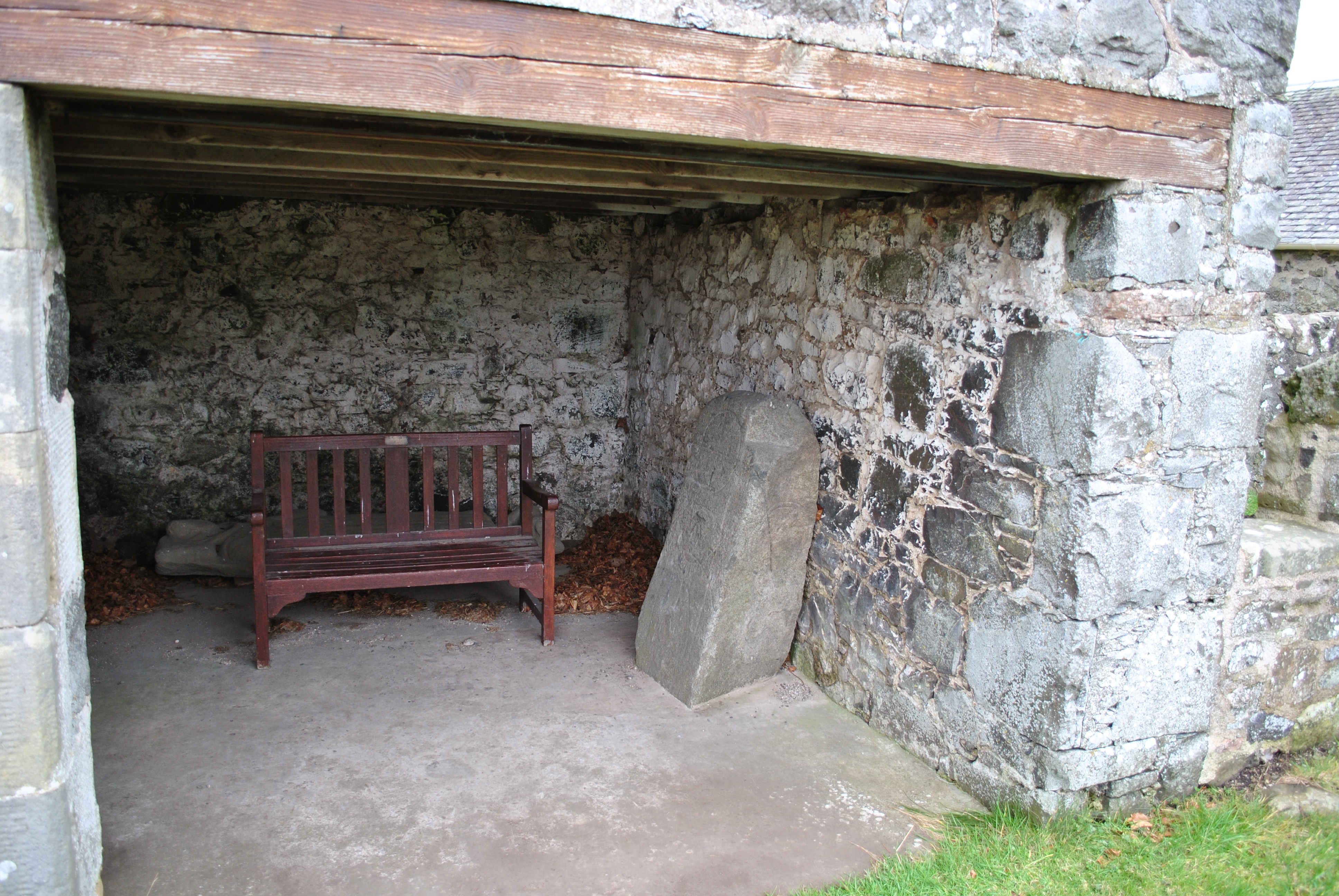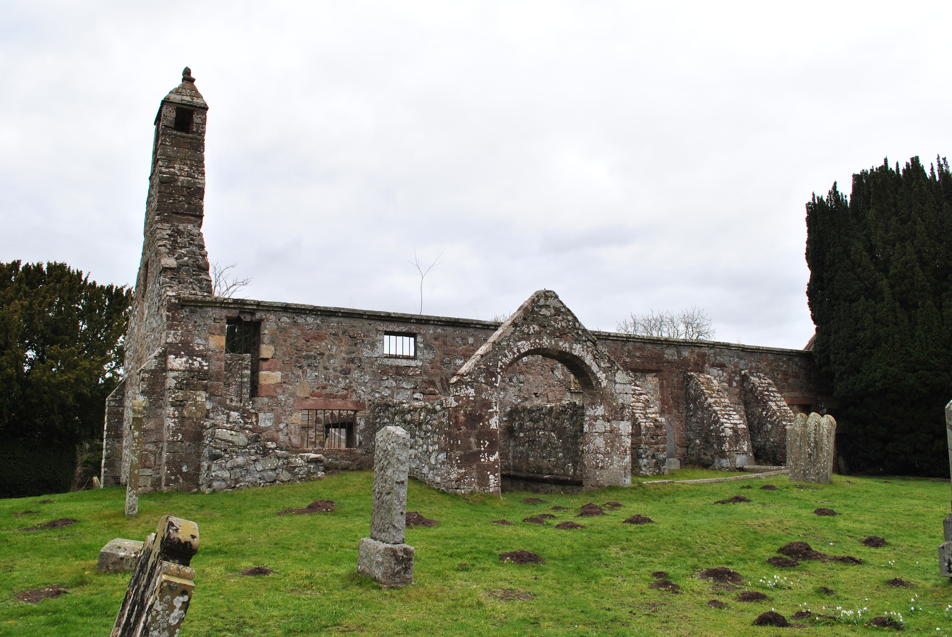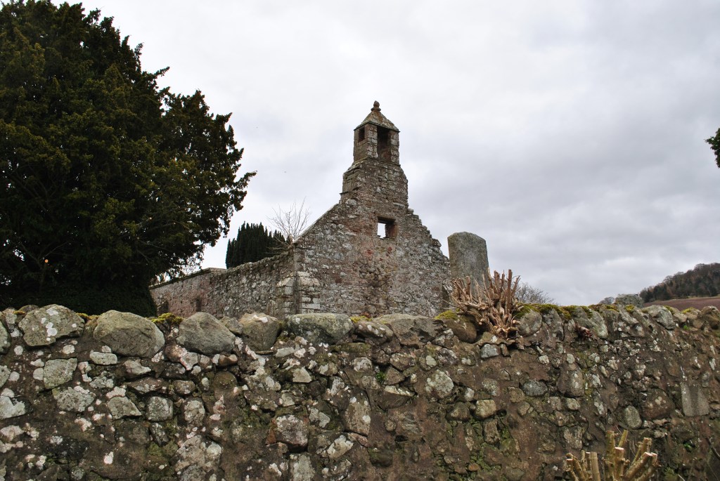 The roofless ruins of St. Magridin’s church stand to the east of a farm lane on a small knoll, surrounded by a graveyard and boundary wall. The site is at the north west of Lindores Loch, where the loch has silted up and become boggy ground. Its east end looks over a gentle slope towards wooded and agricultural land. The church lies east-west and is a long, narrow medieval building. It was built in the 13th century and consecrated in 1242 by Bishop David de Bernham, and then received significant additions in the seventeenth century. It was abandoned in 1827 but restored in 1856. It was eventually replaced by the church at Abdie (site 4674). It is surrounded by a graveyard in which. in common with most medieval churchyards, the majority of memorials are to the south and east of the church. A small building built into the boundary wall was a mort-house which currently contains many carved stones, including ‘Lindores Pictish Stone’ which was moved to the churchyard in 1970. (scottishchurches.org.uk)