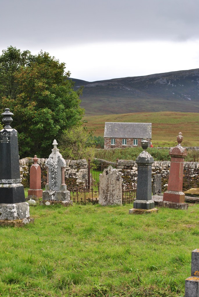 A short walk along the river takes you to a few farm buildings until to your right the pathway to the Braemore burial ground emerges. It is small and not in use any longer, but beautifully situated in this rural setting.