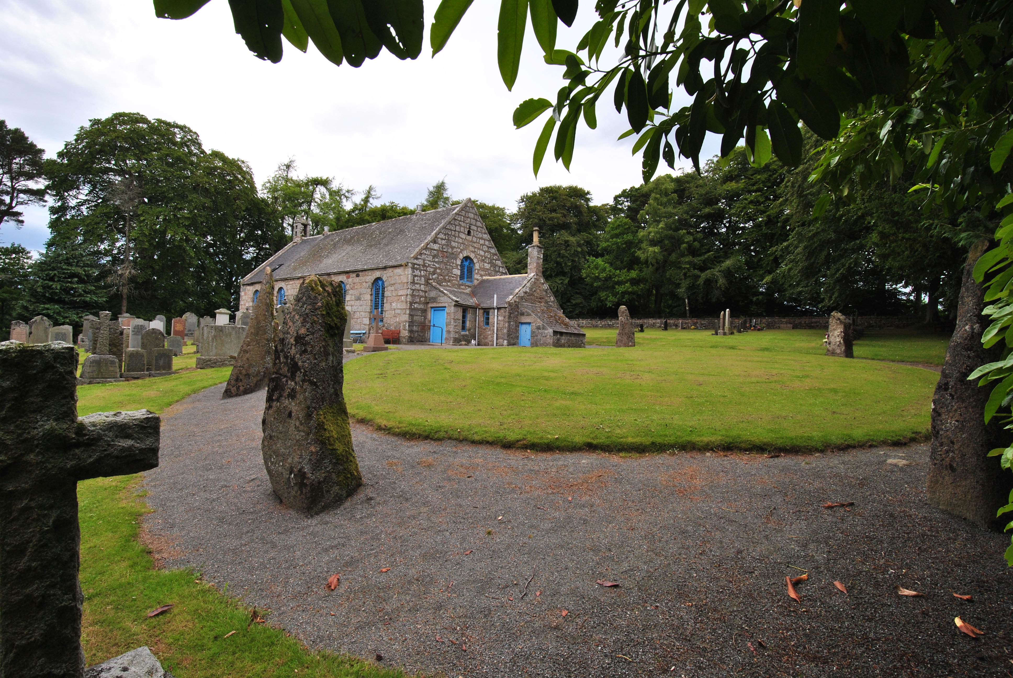 In Midmar, the stone circle, a ritual site thousands of years ago, was chosen to built the new church and a graveyard; standing stones and gravestones side by side.