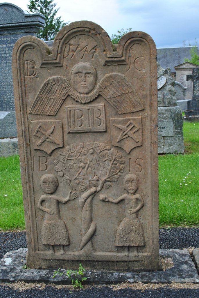There are two fine examples of Adam and Eve stones in Little Dunkeld Churchyard, one dates back to 1744, the other to 1762.
