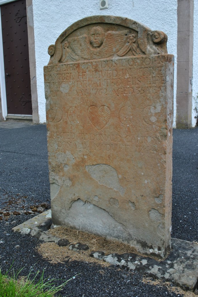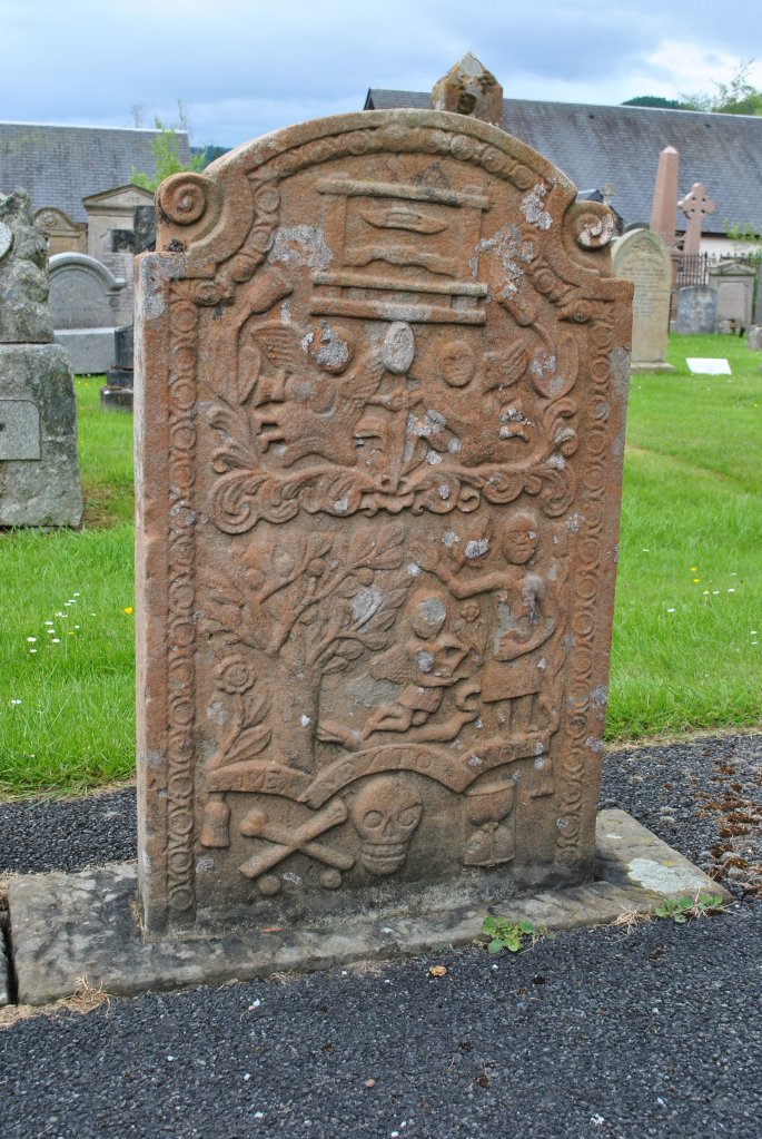 Just a few yards away from the Adam and Eve stones in Little Dunkeld Churchyard, a man was buried, whose lament for the death of his second wife has become famous: Niel Gow, the famous Scottish fiddler of the 18th century. He stopped playing after his second wife died but took the instrument up again with the famous lament: more beautiful a memento than any carving on a stone could be.