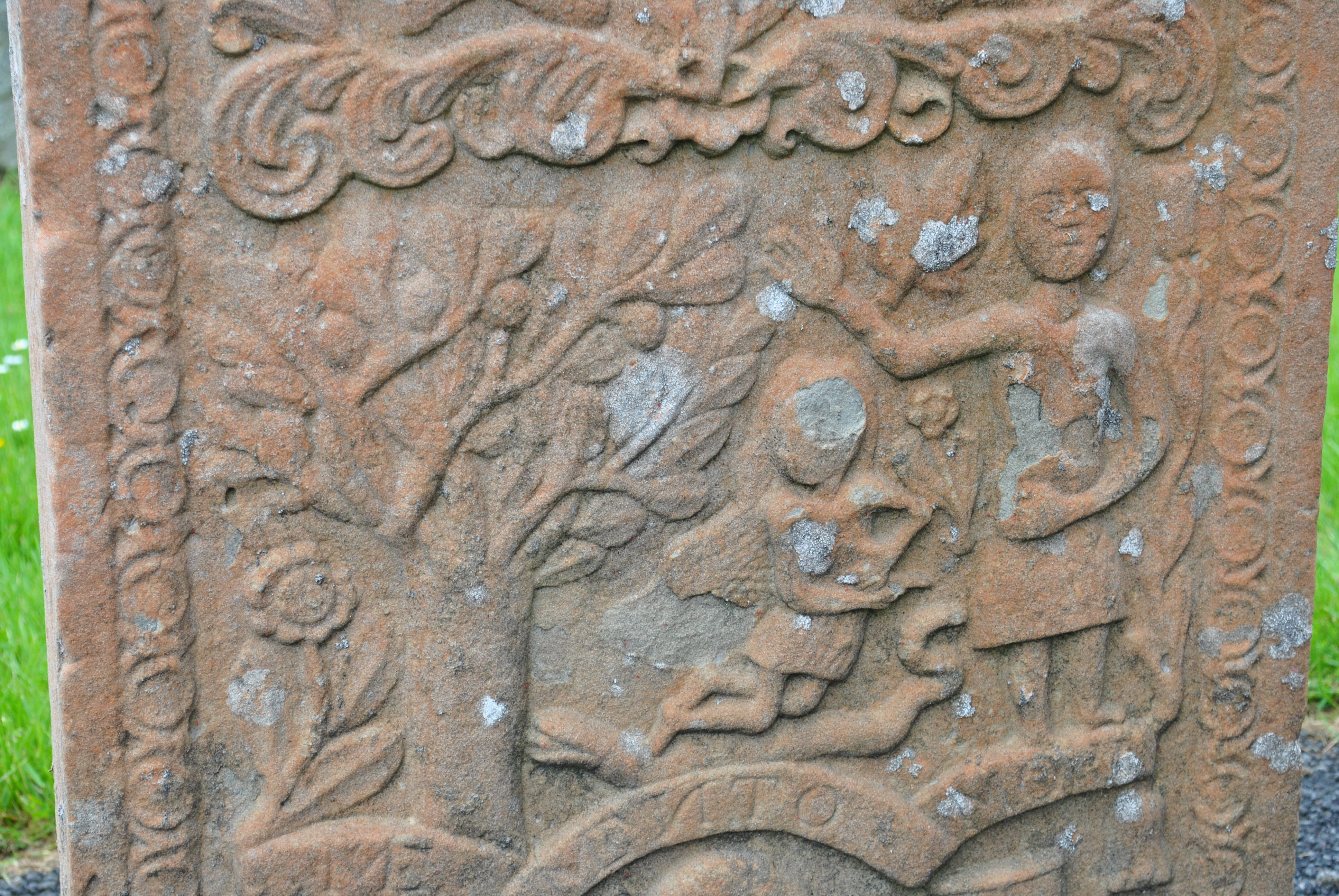 The naked figures of Adam and Eve to mark a grave – this is very much 18th century thinking. Generally they were not depicted utterly naked; it would have seemed out-of-place on a grave. Essential part of the design were the tree and the serpent.