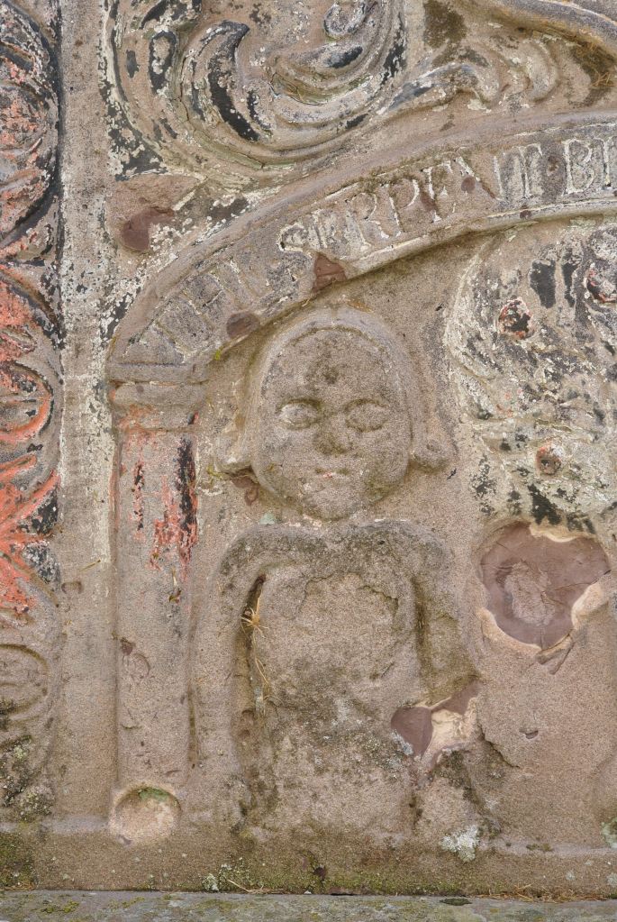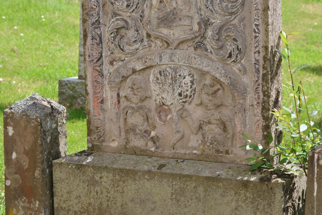 In both cases the figures depicting Adam and Eve, the prototype Christian man and woman, in a rather desexualised way.  Adam does not look particularly masculine, nor does Eve look very feminine. Decency is a major part of gravestone design and certainly has been in 18th century Scotland. After all, a graveyard is a place of mourning.