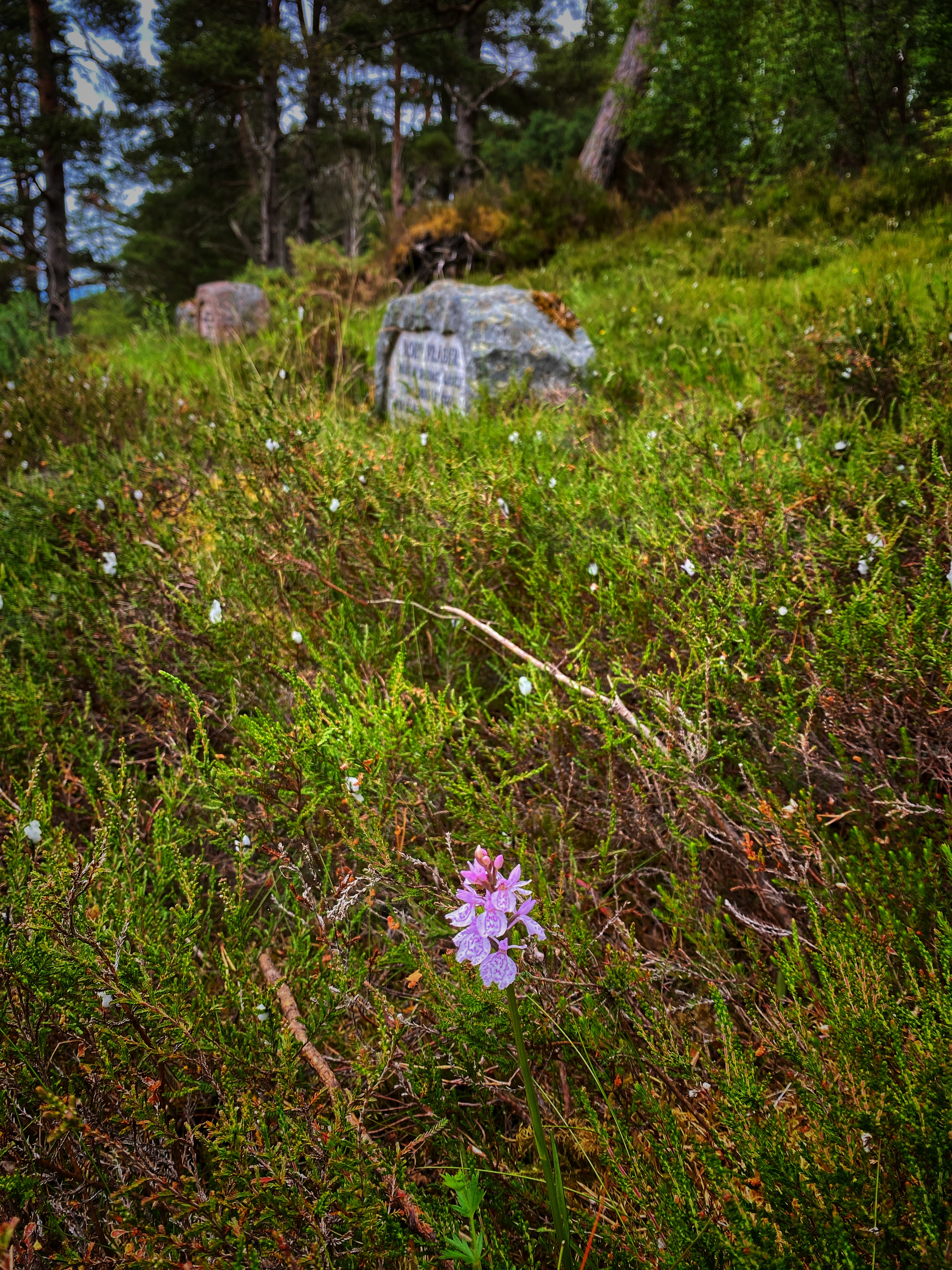 Moniack Burial Ground is not a public graveyard in the traditional sense. It appears to have served as a private Fraser family plot, likely in use during the 19th and 20th centuries. Visitors will find only a handful of headstones. Most lie low in the moss or are surrounded by encroaching heather.